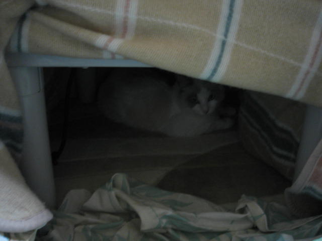 丸くなってはいないものの、くつろいでおりますw 炬燵と猫、絵になってますね^^ 10分程したところで出てきました ポカポカしていて暖かかったです^^