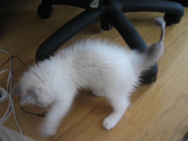 尻尾にカビができてしまって、痛々しい姿に;; ライオンみたいな尻尾に;; 可愛らしいと思ってはいけませんよw バリカンで毛を剃られて ハサミでカビの付いたかさぶたをベリっと剥されました;; 子猫なので、抵抗力が低く 少し大きくなれば治るとのこと それまでが大変です><。