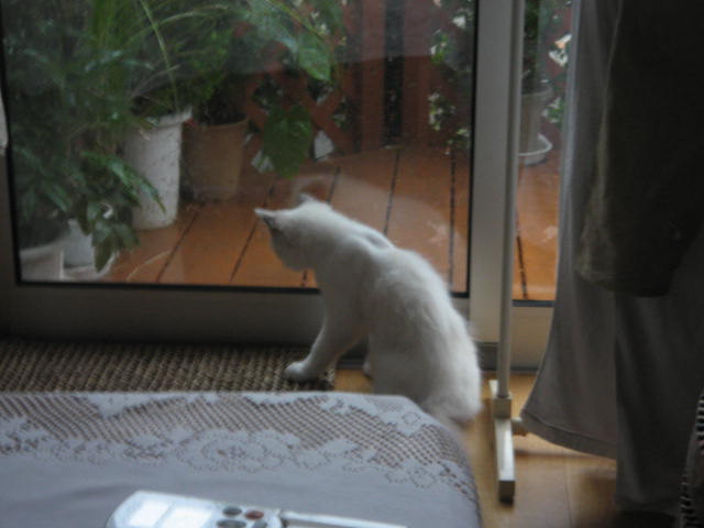 家の犬は雷が苦手 机の下で小さくなってます 一方で猫はというと… 本人はまったく気にしてない様子です ガラスに写ってる自分が気になってるみたい^^; このあと、爪を砥いでましたw よく観察すると性格が色々とあって面白いですね^^