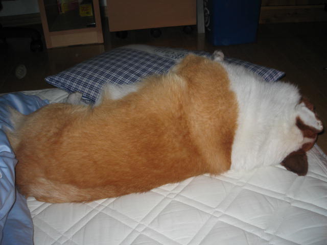 就寝前のことです いつものことですが、 枕と寝るスペースを返してくれませんw 冬場は暖かくてよいのですが^^;
