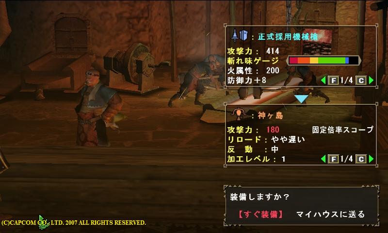 何はともあれ上位武器が欲しくて、グラの骨髄を入手 正式採用機械槍を生産しました^^ それを手にして、ゲリョス×2へ行ってまいりました あ、水浴び中失礼いたしますww シーズン2.0記念のリオレウス頭飾り 思ったより大きく、しかもやかましいですw その後の採掘にて 神ヶ島を生産できました! 最近物欲センサー無効中!
