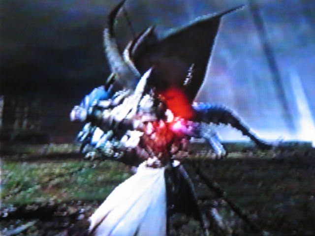 HP-30と悪霊の加護は痛いですが 装填数UPはいいですねw 写真にはありませんが、 暗いところで頭と肩の一部が光ってるのです 久しぶりに弓を使ったので、20分程で討伐しました^^; ぶっちゃけた話、HPと加護の影響で この装備で戦い続けるのは酷なのよねw ~余談~ 写真を撮っている最中のこと …奥に隙間があるから、中に入るのだけは勘弁してよぅ><。 (ビデオのリモコン無いからガラス戸開けて操作してるのよねw)
